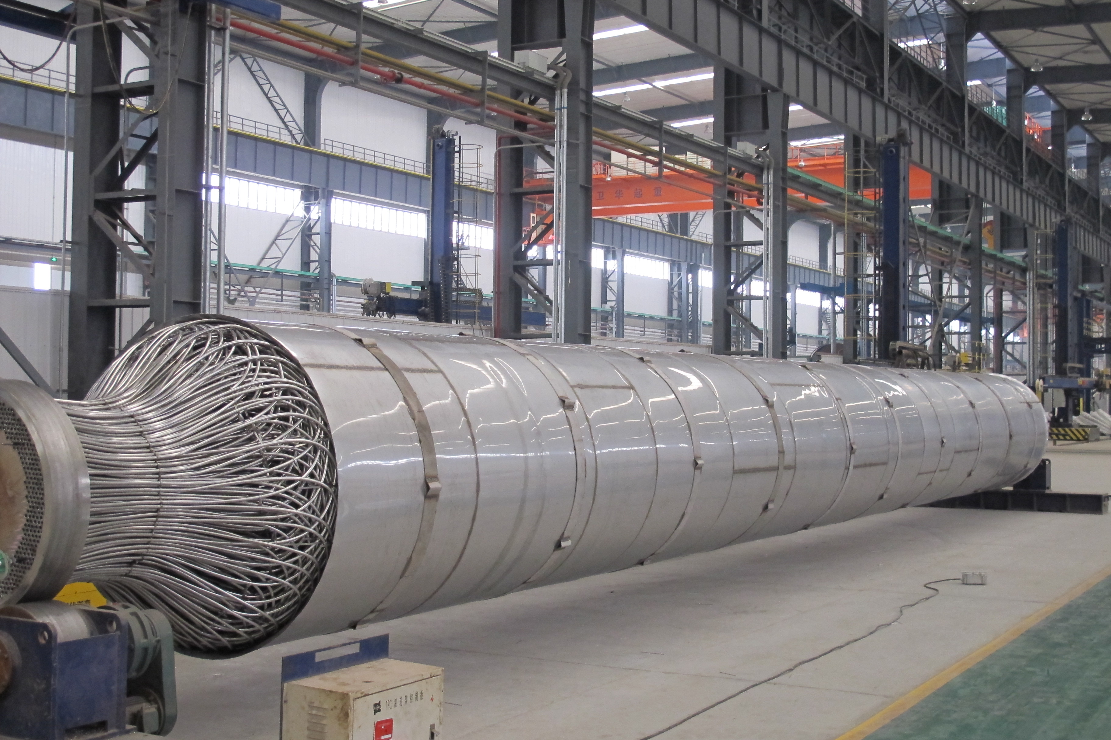 開(kāi)封空分承接的柳化28000Nm3/h空分設(shè)備和首套國(guó)產(chǎn)化40000Nm3/h大型空分設(shè)備中的高壓氧繞管式換熱器,2004年,我公司承接了中國(guó)石油化工股份有限公司安慶分公司化肥油改煤項(xiàng)目低溫甲醇洗繞管式換熱器,位號(hào)和名稱分別為:E-2203變換氣/凈化氣/CO2產(chǎn)品氣換熱器、E-2207甲醇循環(huán)冷卻器、E-2214再吸收塔甲醇/貧甲醇換熱器。2005年,我公司承接了柳州化工股份有限公司大化肥項(xiàng)目繞管式換熱器,位號(hào)和名稱分別為:A-EA5202原料氣/凈化氣/CO2產(chǎn)品氣換熱器。應(yīng)用于50萬(wàn)噸甲醇項(xiàng)目的繞管式換熱器的設(shè)計(jì)及制造,2005年,我公司承接了兗礦國(guó)宏化工有限公司兗礦集團(tuán)高硫煤綜合利用年產(chǎn)50萬(wàn)噸甲醇項(xiàng)目低溫甲醇洗繞管式換熱器,位號(hào)和名稱分別為:E-2203變換氣/凈化氣/循環(huán)氣/尾氣 換熱器。