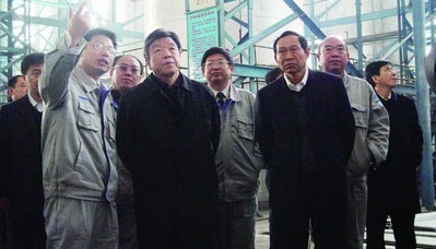 中共河南省委書(shū)記、省人大常委會(huì)主任盧展工(左2),副省長(zhǎng)陳雪楓(右3)到公司新廠區(qū)施工現(xiàn)場(chǎng)考察調(diào)研