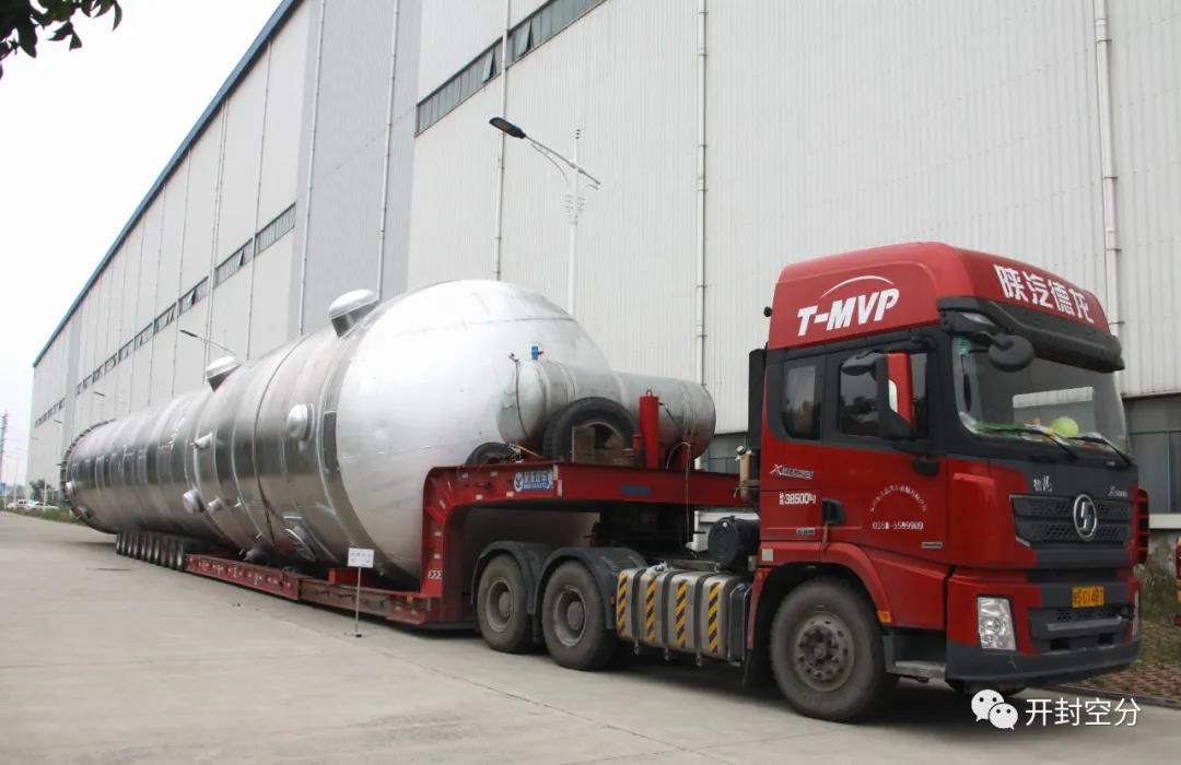 據(jù)悉,該項(xiàng)目下塔(含主冷凝蒸發(fā)器)重量約100噸,尺寸為31米×4.5米×4.7米,屬超大型設(shè)備運(yùn)輸,由于發(fā)貨時(shí)間緊急,項(xiàng)目管理部及時(shí)組織運(yùn)輸車(chē)輛,在空分設(shè)備廠(chǎng)及搬運(yùn)隊(duì)的積極配合下圓滿(mǎn)完成了此次發(fā)貨任務(wù)。